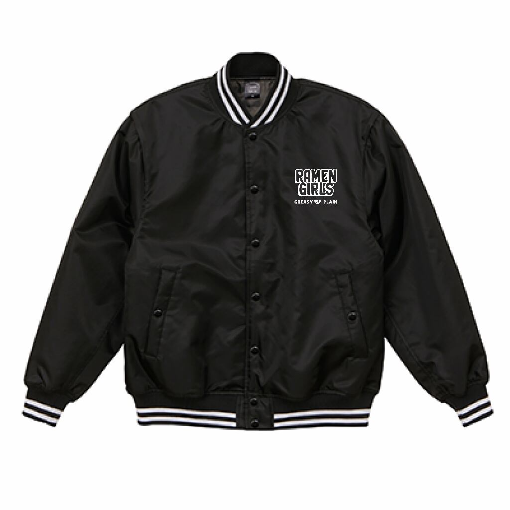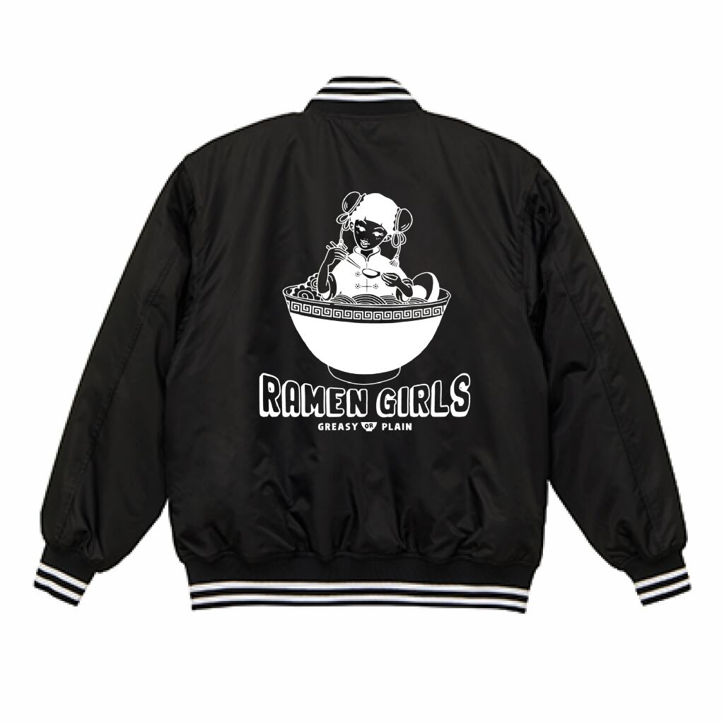 RAMENGIRLロゴを胸元にキャラクターを背中に印刷したおしゃれなスタジアムジャケットです。